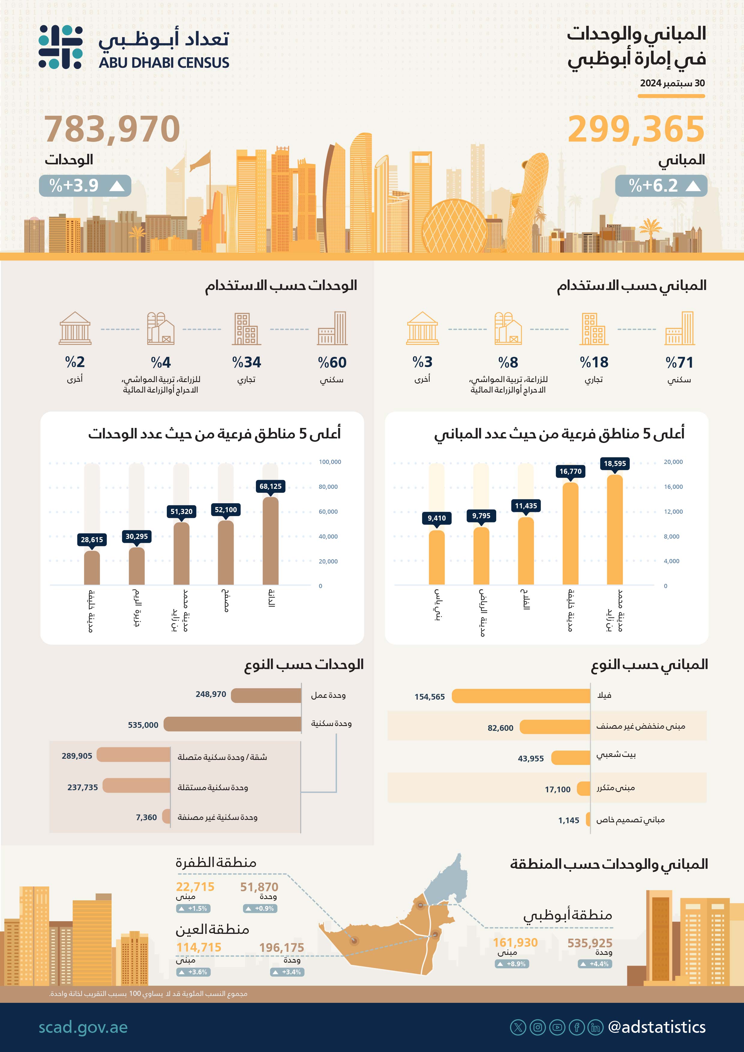 من هذه الوحدات 441,410 وحدة سكنية بنسبة 58%، و313,150 وحدة غير سكنية بنسبة 42%.