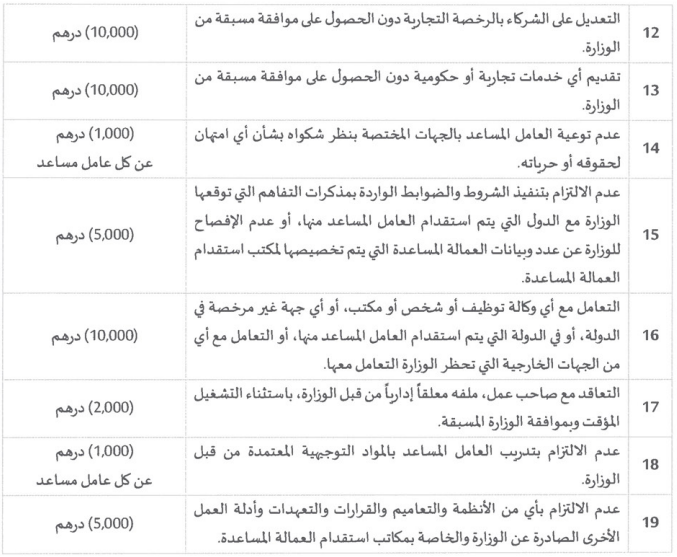 إذا خالف مكتب استقدام العمالة المساعدة الشروط المنصوص عليها يكون لصاحب العمل الحق في رفض تشغيل العامل المساعد، وعلى المكتب توفير عامل مساعد بديل أو رد أتعاب الاستقدام لصاحب العمل، وذلك دون الإخلال بحق صاحب العمل في مطالبة مكتب الاستقدام بالتعويض عن أي ضرر قد يلحقه بسبب الإخلال بالعقد.