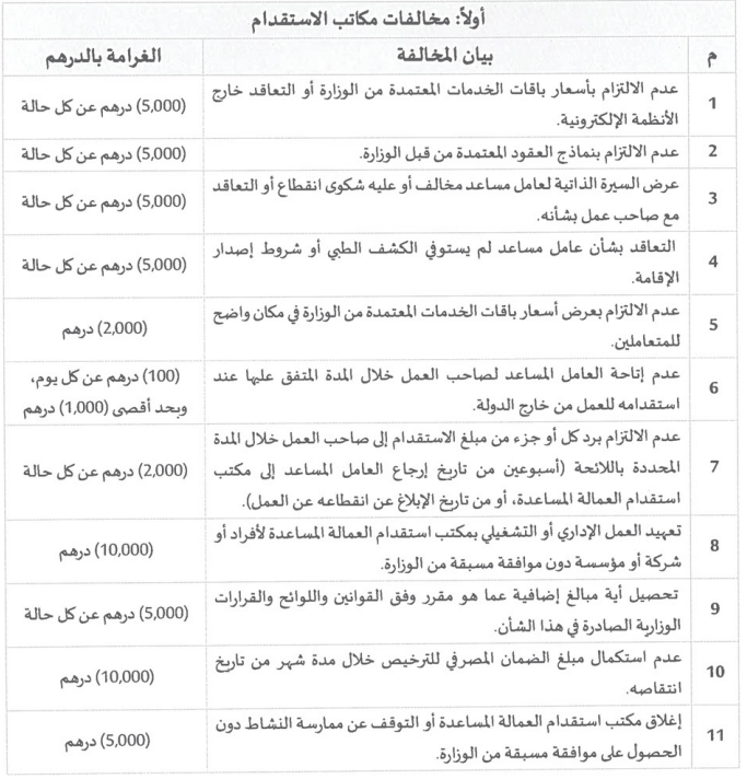 على مكاتب استقدام العمالة المساعدة الالتزام بالتالي: